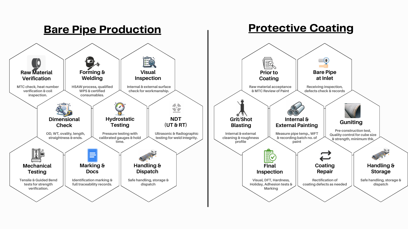 Capable of manufacturing HSAW & LSAW pipes as per required diameters and specific wall thicknesses.
